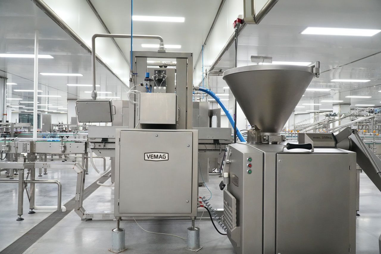 濕糧全生產(chǎn)線采用自動化設(shè)備,可生產(chǎn)罐頭、妙鮮包、貓條、乳品等產(chǎn)品,應(yīng)用德國威邁格FKF III型雙螺桿灌裝機(jī),無重力擠壓大塊原料,保持肉材原狀且罐裝均勻。